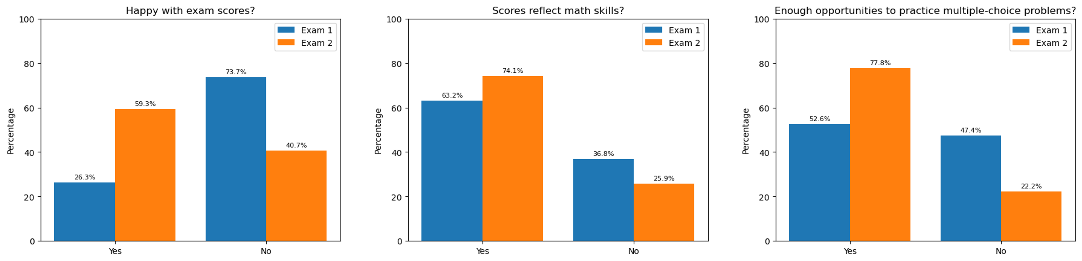- The Department of Mathematics assesses student progress via three midterm multiple-choice exams and one cumulative final multiple-choice exam